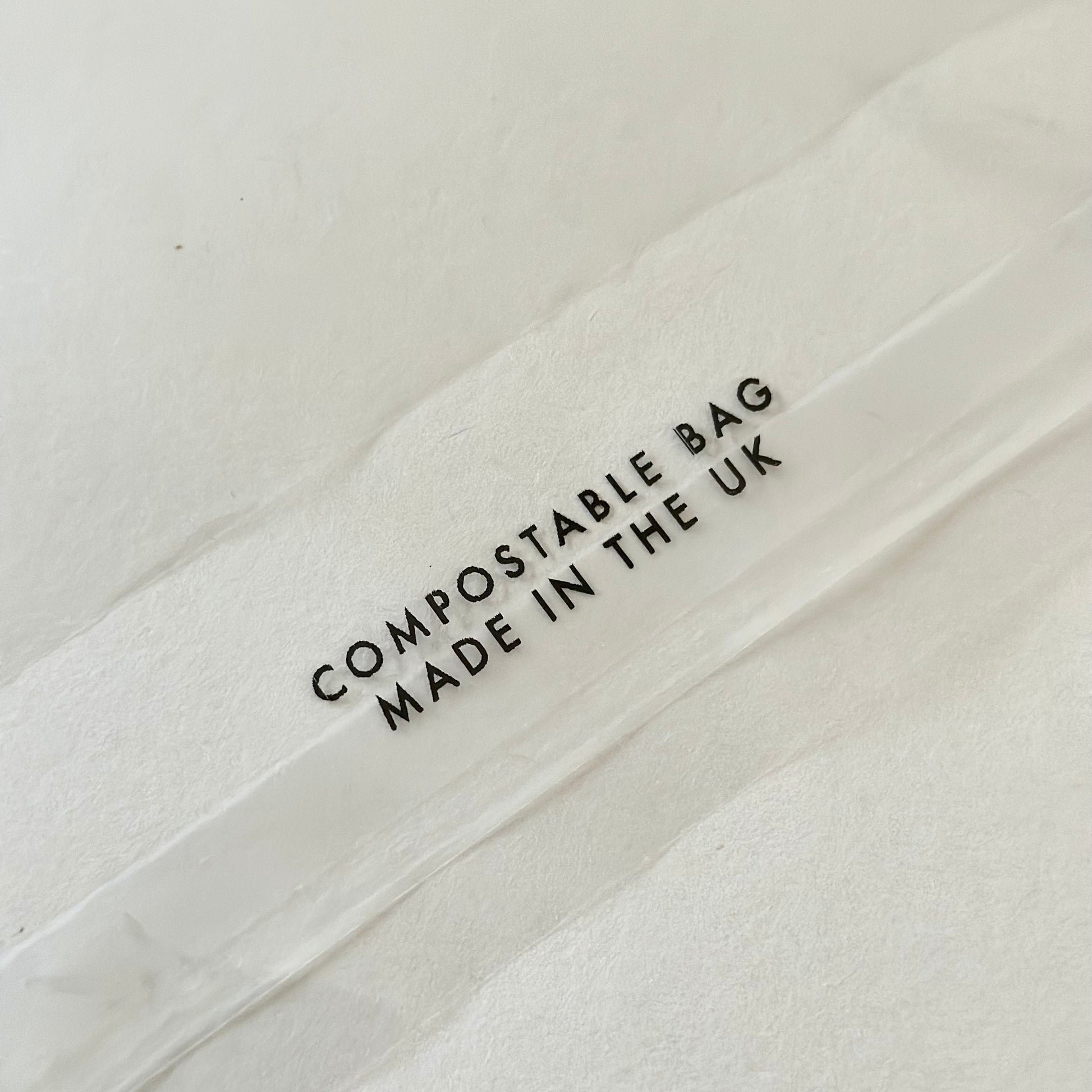 ✨ CRYSTAL-CLEAR DESIGN: Transparent with “COMPOSTABLE BAG MADE IN THE UK” elegantly printed in black hot-foil text.