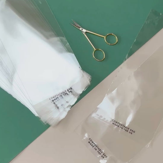 ✨ CRYSTAL-CLEAR DESIGN: Transparent with “COMPOSTABLE BAG MADE IN THE UK” elegantly printed in black hot-foil text.